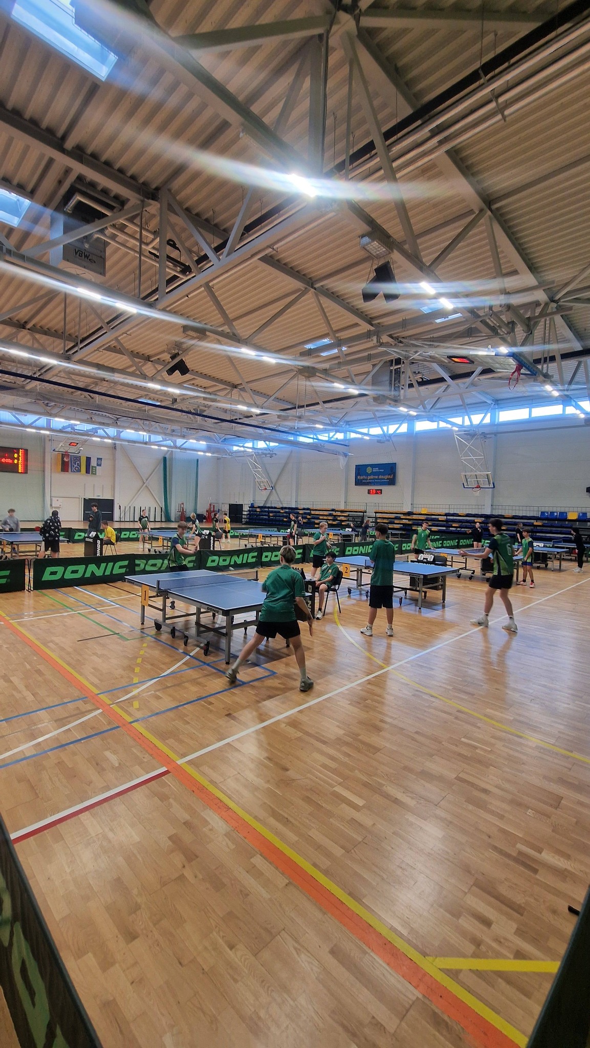 Šiandien sporto centre vyko Lietuvos mokyklų žaidynių stalo teniso zoninės varžybos (mažųjų mokyklų), kuriose varžėsi penkios berniukų ir penkios mergaičių komandos. Kelmės rajoną šiose varžybose atstovavo "Aukuro" pagrindinė mokykla, mokytojas Virgilijus Valiuška.