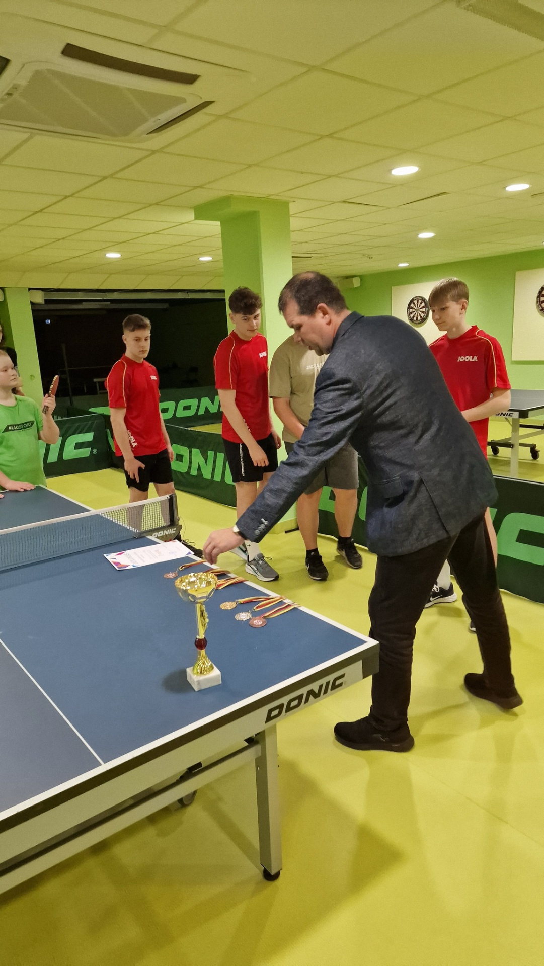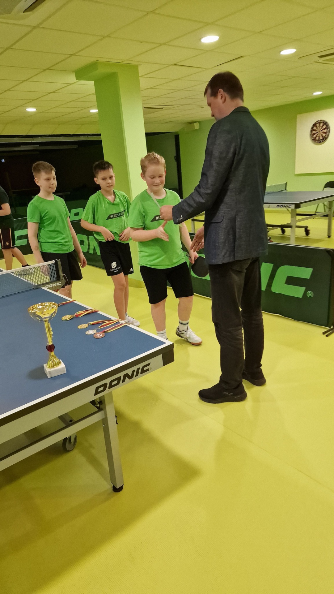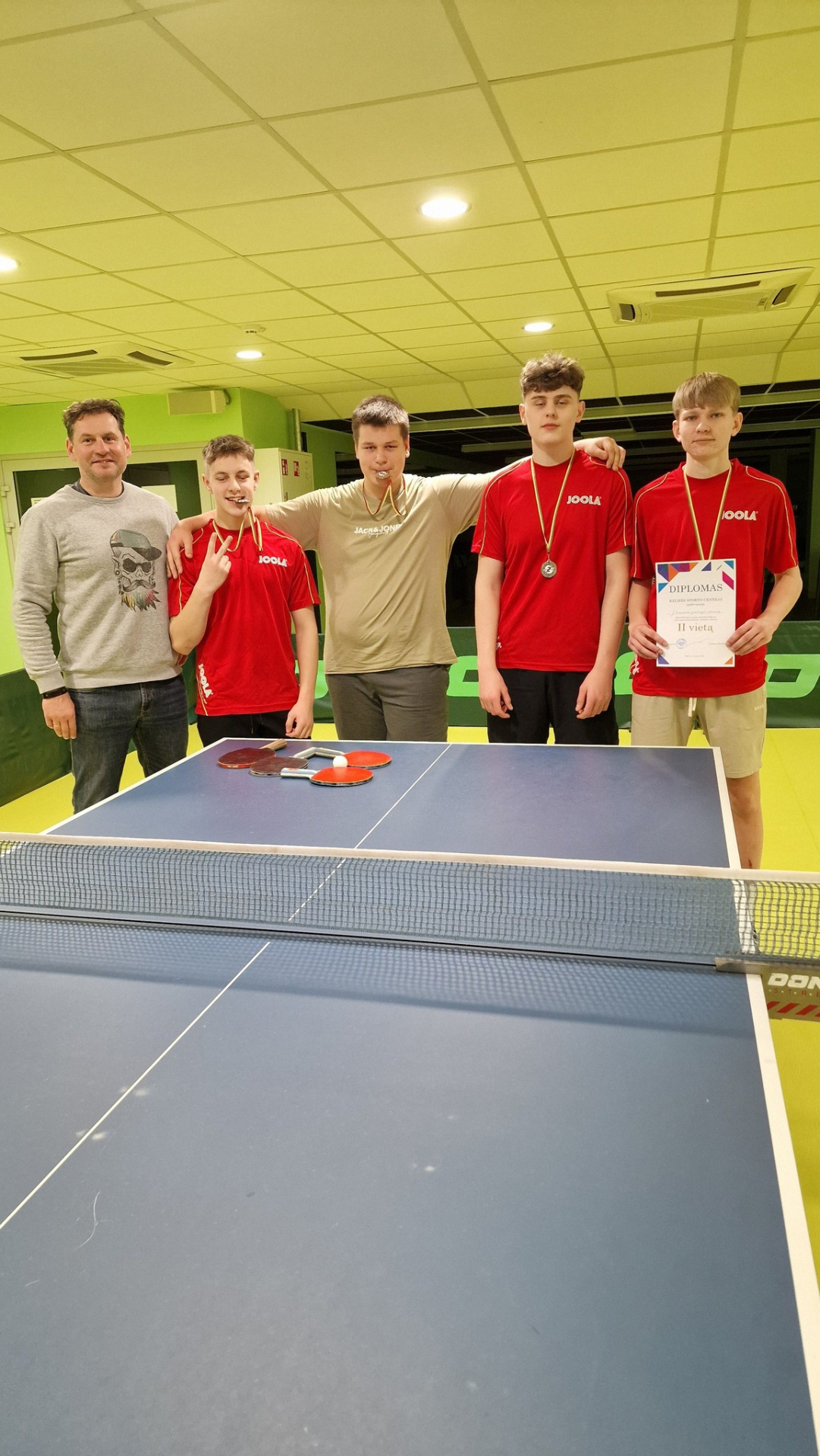 Stalo tenissininkus treniruoja vyresnysis sporto mokytojas Virgilijus Valiuška.